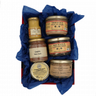Le panier Saveurs de Bourgogne : un coffret raffiné réunissant le meilleur du terroir bourguignon. Compotée Pomme-Vanille, moutarde de Dijon, crémeux d'escargot, terrine de sanglier au Marc de Bourgogne, tartinade et terrine de foie de volaille aux girolles se succèdent pour un véritable voyage gourmand !