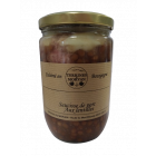 Jus de cuisson (eau, amidon modifié, oignons, carottes, purée de tomates double concentré, sel, maltodextrine, légumes déshydratés (tomate, oignons poireau, carotte), fécule de pomme de terre, épices et aromates (ail, poivre), saucisses de Toulouse 26% (viande de porc origine France 90%, eau, acidifiant : lactate de sodium, sel, correcteurs acidité : citrate de sodium, dextrose, arômes naturels, épices et plantes aromatiques, antioxydant : érythorbate de sodium, colorants : carmins-rouge de bettrave, conservateur : nitrite de sodium. Boyau naturel), lentilles vertes précuites 22%.